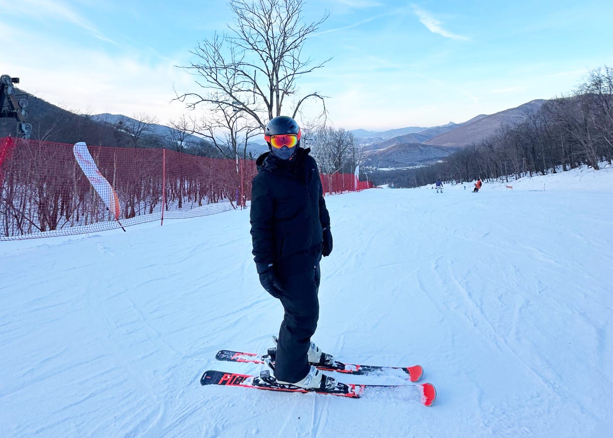 Itās -20 degrees Celsius on an enormous peak (editor modeās note: itās a green beginner slope), and my legs are threatening to shake as I start the descent.